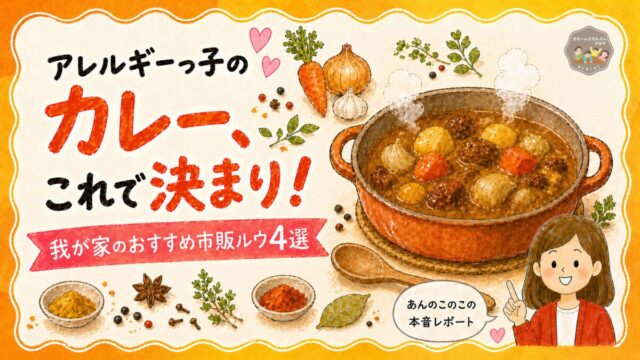アレルギー対応・お役立ち情報 アレルギーっ子のカレー、どれ選ぶ?市販ルウ4種を徹底レポート! 2026年4月27日 あんのこのこ https://dara-ntodanran.com/wp-content/uploads/2025/02/1-2.png だらーんとだんらんブログ|学校の話&アレルギーっ子の子育て