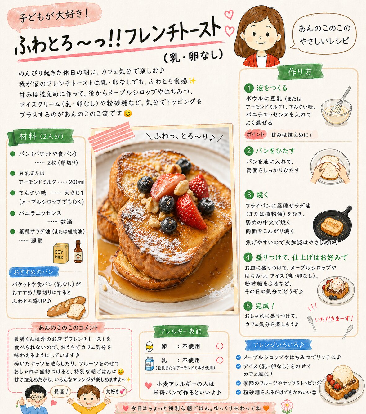 今日のふわとろフレンチトーストが、あなたのおうちに小さなしあわせを運んでくれますように🌈✨